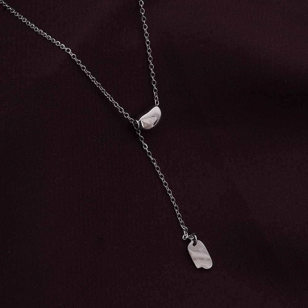 The Silver Sensation Necklace is a sleek and modern lariat design crafted in rhodium-plated stainless steel. Its minimalist silhouette exudes contemporary elegance, making it a versatile jewellery piece for both casual and evening wear. Perfect for layering or wearing solo, this necklace adds a refined, polished touch to any outfit, elevating your everyday or special occasion looks with subtle sophistication.